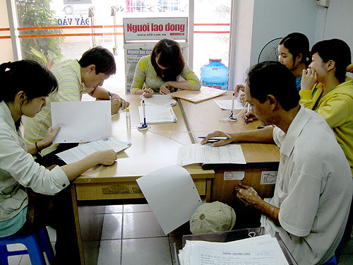 Ứng viên đăng ký tìm việc tại Văn phòng Hỗ trợ Việc làm Báo Người Lao Động. Ảnh: TRƯỜNG HOÀNG